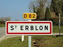 Panneau d'agglomération de Saint-Erblon en Ille-et-Vilaine.