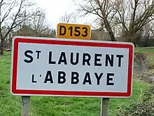 Panneau d'agglomération de Saint-Laurent-l'Abbaye.