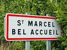 Panneau d'agglomération de Saint-Marcel-Bel-Accueil.