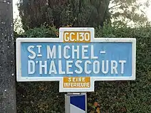 Ancien panneau de limite d'agglomération de Saint-Michel-d'Halescourt.