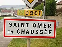Panneau de limite d'agglomération de Saint-Omer-en-Chaussée.