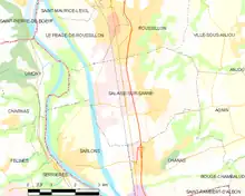 Carte indiquant les limites de la commune de Salaise-sur-Sanne.