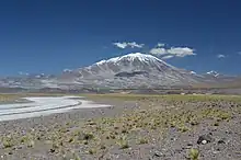 - (Géographie) Volcan des Andes, sur la frontière entre l’Argentine et le Chili, Il culmine à 6016 mètres.