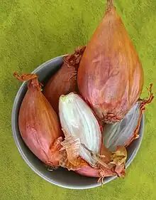 - Cette page utilise des informations de l’article du Wiktionnaire en allemand, sous licence CC BY-SA 4.0 : Schalotte. (liste des auteurs et autrices)