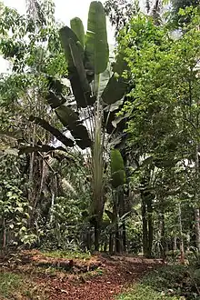 Au centre au premier plan, un Phenakospermum guyannense de la famille des Strelitziaceae.