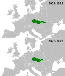 - Ancien pays européen (1918–1939 et 1945–1992), maintenant divisé en deux (République tchèque et Slovaquie).
