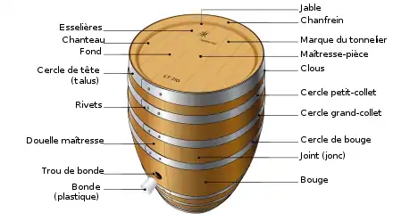 Cette page contient un recueil de vocabulaire en français autour du thème « tonneau ». Ce recueil, appelé thésaurus, ne traite pas du mot lui-même, mais tente de fournir une liste de mots associés au thème dont vous pourriez avoir besoin et qui pourraient vous échapper.