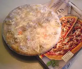 Tiefkühlpizza \ˈtiːfkyːlˌpɪt͡sa\ féminin