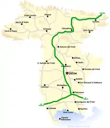 Carte de la région d’ Udine dans le Frioul-Vénétie julienne.