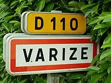 Panneau d'agglomération de Varize en Eure-et-Loir.