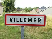 Panneau d'agglomération de Villemer (Yonne)