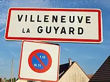 Panneau d'agglomération de Villeneuve-la-Guyard.