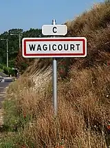 Panneau d'agglomération de la section de Wagicourt, commune de Therdonne.