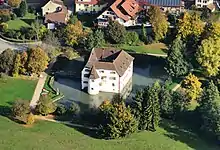 - Wasserschloss (« château entouré de douves en eau ») ne doit pas être confondu avec Wasserturm (« château d'eau »).