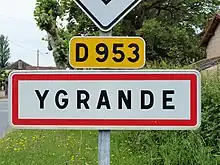 Panneau d'agglomération d’Ygrande.