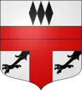 - Mi-coupé de gueules au chef d’argent chargé de trois losanges accolés de sable, et mi-coupé d’argent à une croix de gueules, cantonnée de quatre serres d’aigle de sable posées en barre, qui est de Rurange-lès-Thionville de Moselle → voir illustration « armoiries avec 3 losanges accolés »