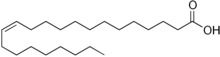 - (Biochimie) Acide gras mono-insaturé oméga-9 avec 22 atomes de carbone, de formule de structure CH3–(CH2)7–CH=CH–(CH2)11–COOH, que l’on trouve dans le colza, des plantes du genre Erysimum, et les graines de moutarde.
