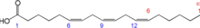 - (Biochimie) Acide gras polyinsaturé oméga-6 de formule chimique brute C18H30O2.