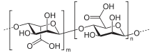 - (Biochimie) Polymère, polysaccharide (acides D-mannuronique et L-guluronique) obtenu à partir d'une famille d'algues brunes : les laminaires.
