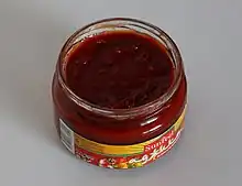 - (Cuisine) Sauce épicée caucasienne à base de tomate, poivron, piment, ail et coriandre.
