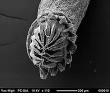 - (Anatomie) Qualifie la frange de cils ou de membranelles, située tout autour du péristome de certaines espèces d’infusoires, qui s’en servent pour induire, en la faisant vibrer, un courant d’eau vers leur péristome pour se nourrir.