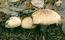 - (Mycologie) Espèce de champignons à lames grises puis foncées, au chapeau hémisphérique puis aplati, écailleux, brun grisâtre, et au pied avec anneau et bulbe, brunâtre.