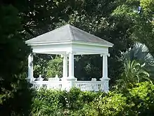 - (Construction) Pavillon, kiosque de jardin, gloriette.