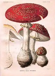 - (Mycologie) Espèce de champignons à lames, à volve et à anneau, au chapeau rouge et couvert de verrues blanches ou un peu jaunâtres, de la famille des Amanitaceae, de nom scientifique Amanita muscaria.