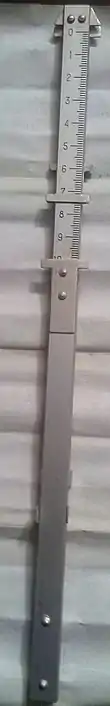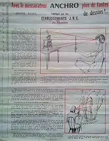 - (Rare) Forme de mensurateur pour relever les proportions lors de la réalisation d’une vue en perspective.