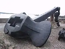 - (Héraldique) Meuble représentant une ancre de marine dans les armoiries. Elle est généralement représentée en pal, la trabe vers le chef. Elle est composée d’une stangue, tige, verge ou flanque, d’une trabe (traverse ou jas) surmontée d’un organeau (anneau). Les bras de l’ancre portant des pelles (sortes de pointes de flèches). On n’indique les composants de l’ancre que s’ils sont d'un émail différent ou s’ils sont manquants. Parfois une gumène (corde, câble, qu’il faut blasonner) est attachée à l’organeau et s’enroule autour de la stangue. Elle peut former des nœuds. Quand il y a un second organeau en bas de l’ancre, on parle d’ancre bouclée. Une ancre renversée fait référence à la marine d’eau douce.