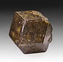 - (Minéralogie) Espèce minérale du groupe des silicates, sous-groupe des nésosilicates de la famille des grenats, de formule Ca3Fe2(SiO4)3.