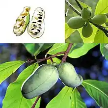 Desasimines, fruits de l'asiminier (ici, l’Asimina triloba, une annonacée propre à l'est des États-Unis et l'extrême sud du Canada).