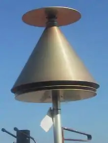 - (Technique, Télécommunications) Antenne formée d’un cône et d’un disque, présentant des impédance et résistance constantes sur de larges bandes.