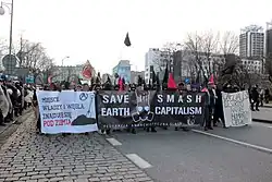Anticapitalism was part of the March for Climate in Poland in 2018. (L’anticapitalisme faisait partie de la Marche pour le Climat en Pologne en 2018.)
