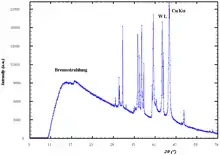 Spectre d'un tube à anticathode de cuivre, mesuré par diffraction sur un monocristal de fluorure de lithium.