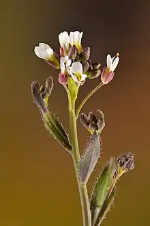 Fleurs d'arabette poilue (Arabis hirsuta).