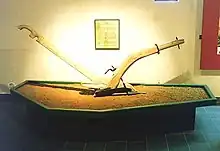 - (Agriculture) Instrument aratoire, à bâti symétrique sans versoir, qui fend la terre sans la retourner et dont l’usage s’est perpétué jusqu’au XIXe siècle dans la moitié sud de la France.