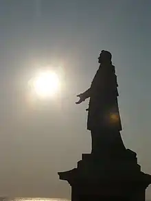 - Fait référence à la statue de Belsunce, évêque de Marseille au XVIIIe siècle, qui se trouve devant la cathédrale de la Major. Celle-ci, les paumes vers le haut, a les mains vides.
