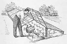 L’arrosage (1) de jeunes plants disposés sous un châssis froid.