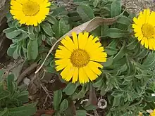 - (Botanique) Espèce de composée méditerranéenne, arbuste à tiges poilues, à feuilles persistantes en spatules et aux capitules de fleurs jaunes, protégée.