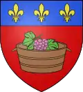 - De gueules à une comporte de vendange au naturel, contenant une grappe de raisin feuillée et tigée au naturel, au chef d'azur chargé de trois fleurs de lys d'or, qui est de Sémalens → voir illustration « comporte de vendange au naturel »