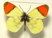 - (Entomologie) Insecte lépidoptère (papillon) de la famille des Pieridae, jaune et noir et dont les ailes antérieures portent une grande tache orangée (Anthocharis belia).