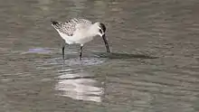 - (Ornithologie) Petit échassier limicole au bec courbé vers le bas, au dessus gris et à croupion blanc.