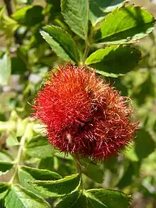 - (Botanique) Galle du rosier, de l’églantier, causé par un cynips (Diplolepis rosae).