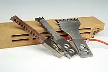 - () Petit ciseau à bois plus épais que large pour creuser des mortaises.