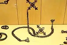 - (Par extension) Anneau servant à suspendre une médaille, une montre à gousset ou de col, un sabre ou encore la courroie servant à attacher le sabre au ceinturon ou à la selle du cheval.