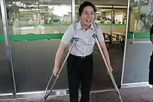 - (Familier) Celle qui se sert d’une ou de deux béquilles.