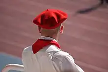 - Toque de laine, ronde et plate, qui est la coiffure traditionnelle des paysans basques.