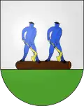 - D’argent a deux bûcherons d’azur, sur une terrasse de sinople, découpant un tronc au naturel posé en fasce sur celle-ci, avec chacun une hache d’or, qui est de la famille Arostegui du Pays Basque espagnol → voir illustration « armoiries avec 2 bûcherons »