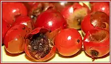 Des baies roses vues de très près.